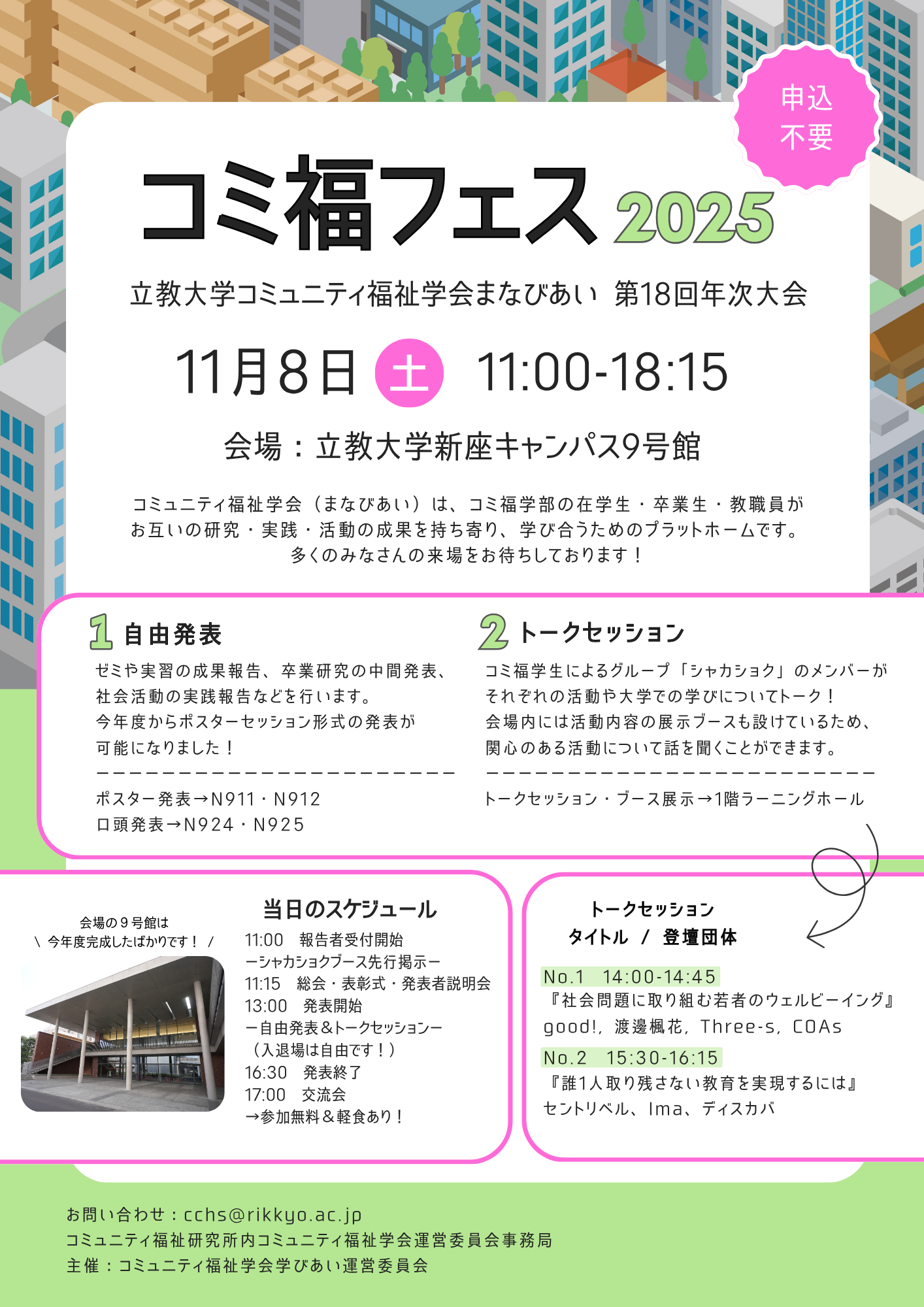 コミ福フェス2025(コミュニティ福祉学会まなびあい第18回年次大会)の詳細が決定いたしました