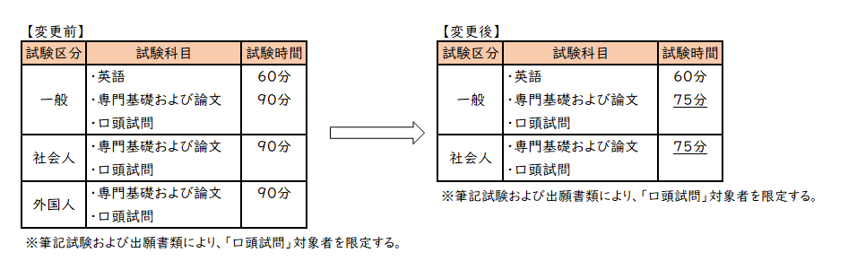 ・「専門試験および論文」の試験時間を、現行の90分から75分 に変更する(秋季・春季)